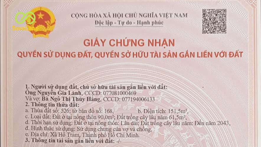Lô đất tọa lạc tại xã Hồ Tràm, vị trí thuận tiện, phù hợp an cư cho gia đình nhỏ. Diện tích 5x30m, trong đó có 90m² thổ cư. Đất sở hữu mặt tiền đường nhựa hiện hữu và theo quy hoạch có thêm tuyến đường 36m phía sau, kết nối các khu vực từ TP.HCM đến Hồ Tràm, tiềm năng tăng giá cao.